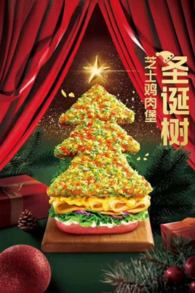 圣诞树鸡肉芝士堡